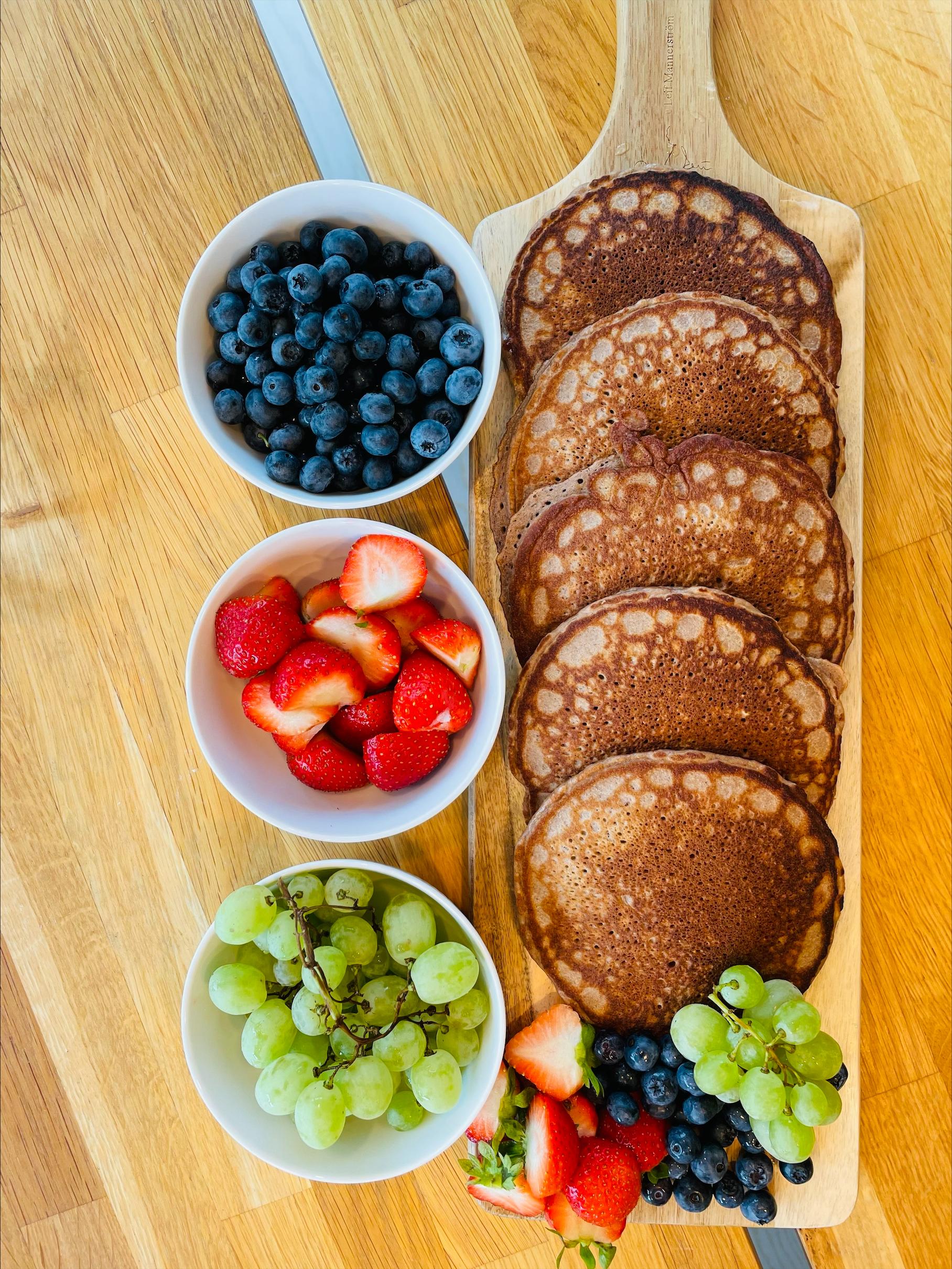 Dessa fantastika pannkakor är låga på fett, höga på protein och innehåller inget socker. Jag har valt ett vaniljprotein som är lite sött i sig eftersom jag tycker den smaken gör sig bäst i pannkakor men här kan man utmana med banan eller chokladpulver också <3